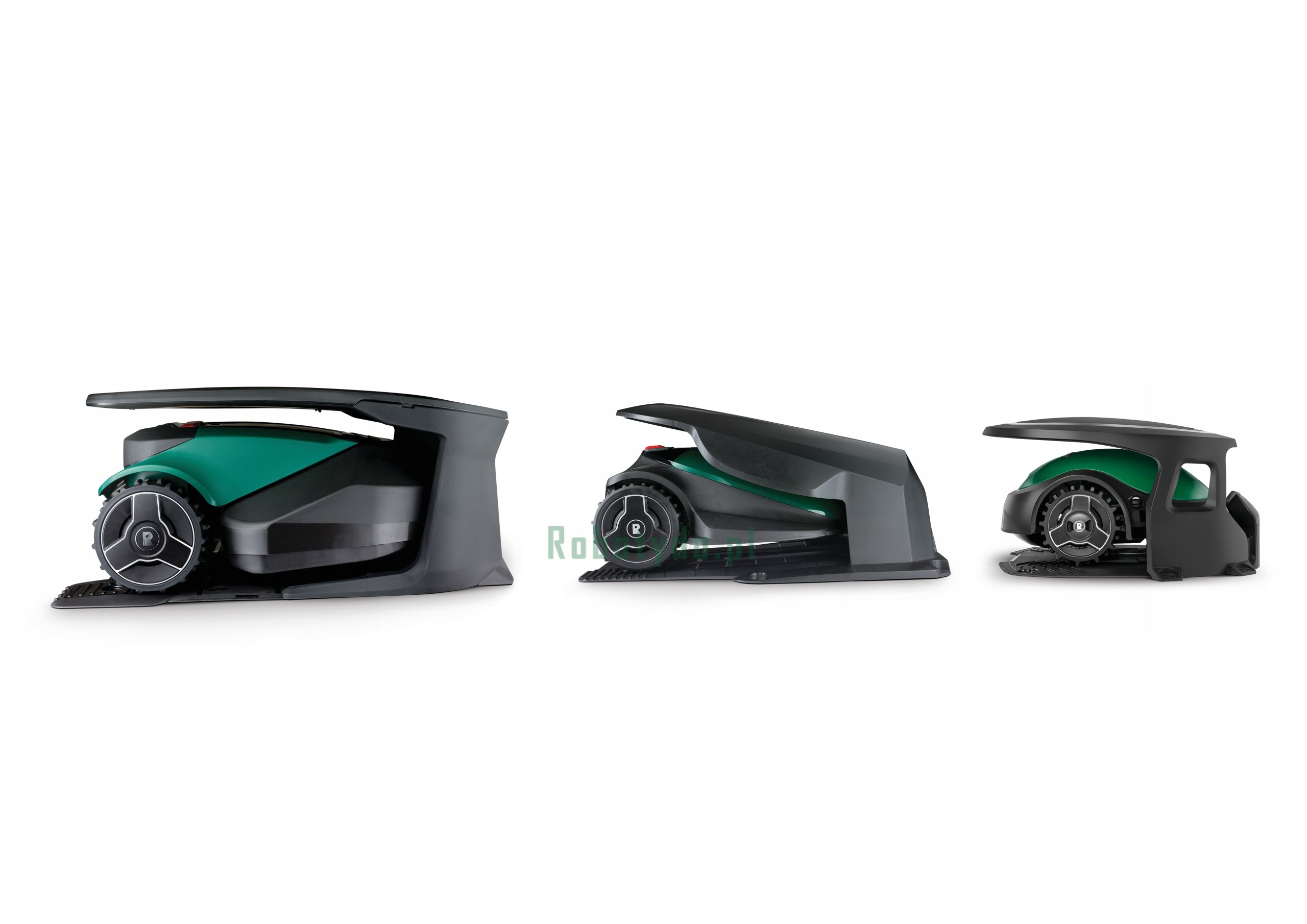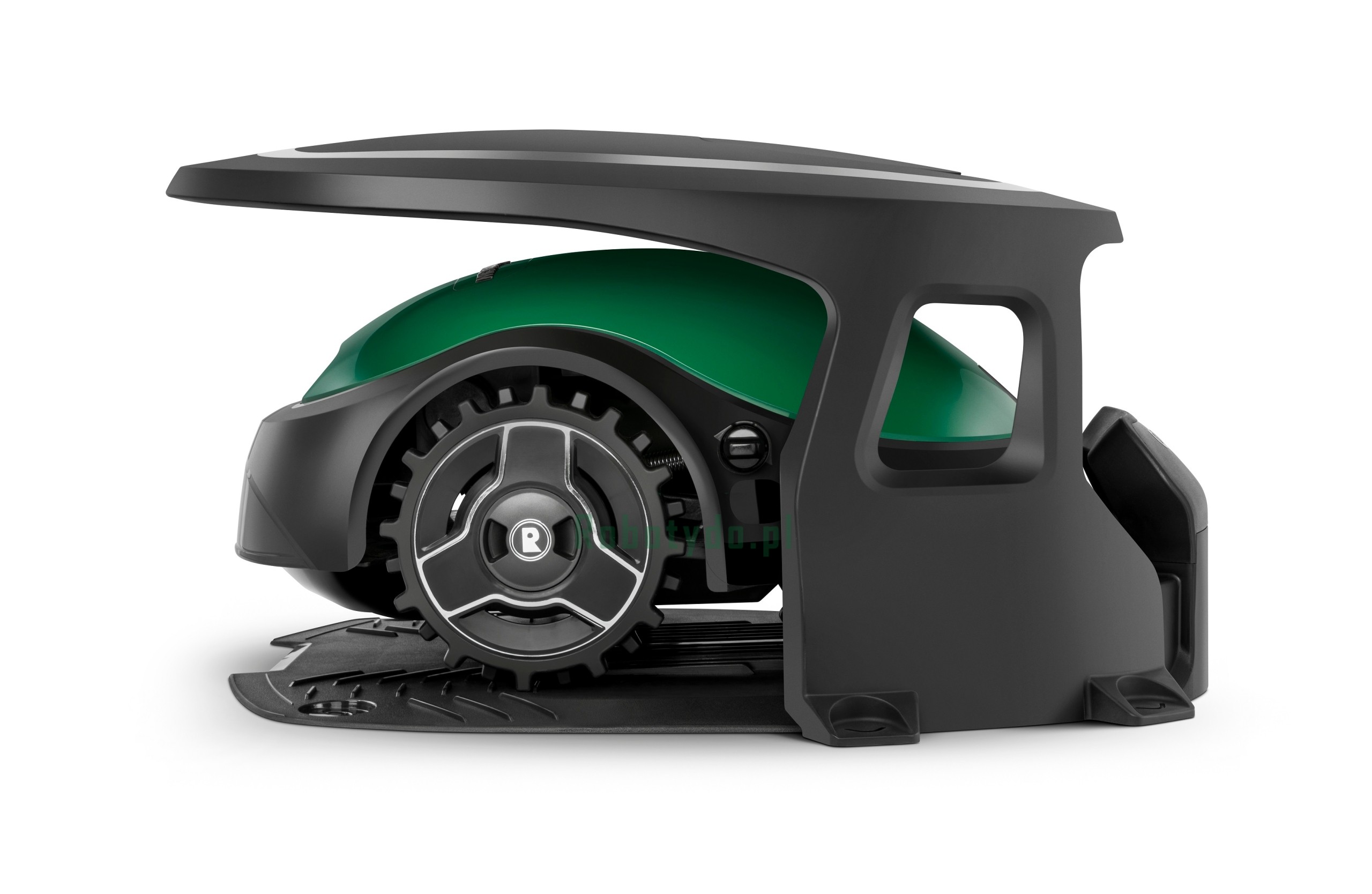Oferuje schronienie przed deszczem, pogodą i promieniami UV, które są użyteczne zarówno do utrzymania robota w czystości, jak i do przedłużenia żywotności kosiarki Robomow.